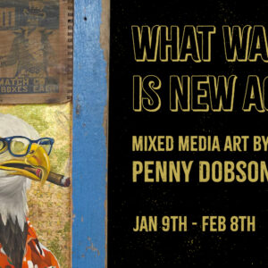 Come by and enjoy the beautiful mixed media art by Penny Dobson. Penny uses vintage artifacts as the foundation of her beautiful and whimsical pieces. You really must see them in person.