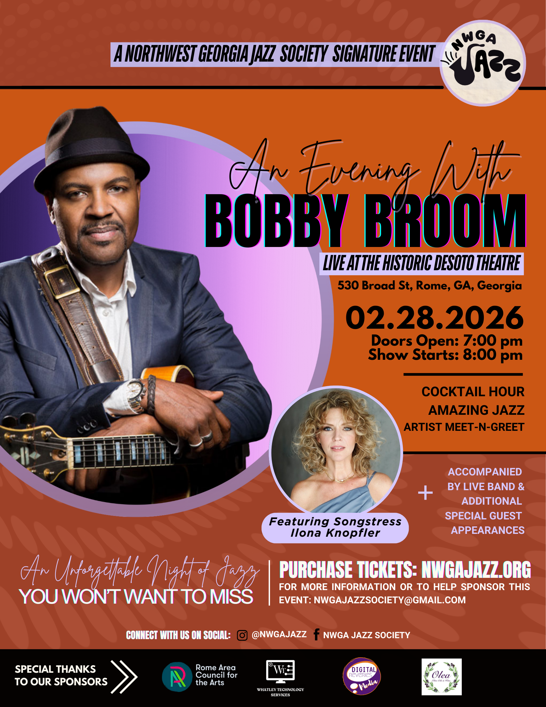 NWGA Jazz is back with another installment of our annual “An Evening With” Jazz Series on February 28, 2026, this time featuring incomparable guitarist Bobby Broom!