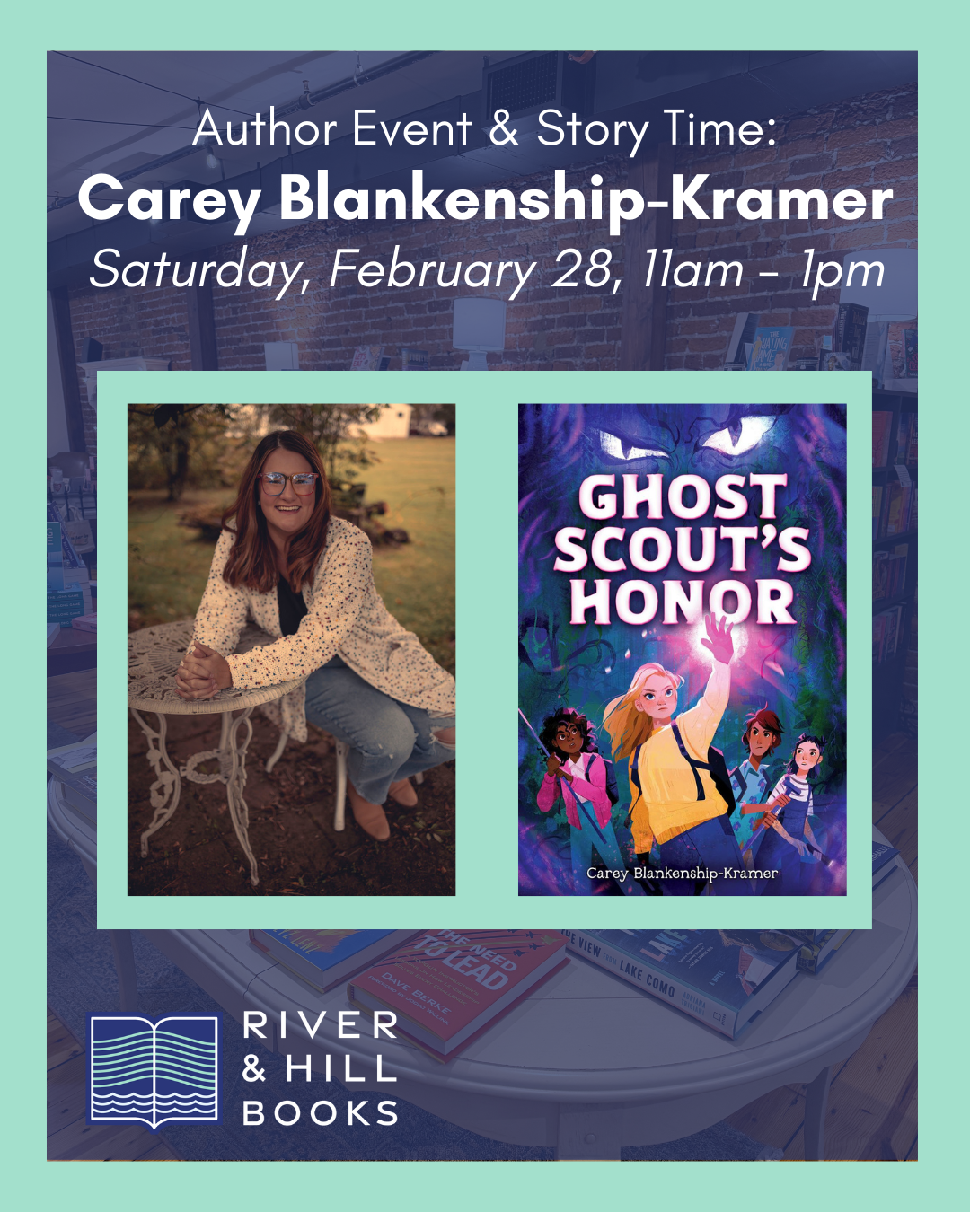 We are delighted to have middle-grade author Carey Blankenship-Kramer at River & Hill Books on Saturday, February 28 from 11am to 1pm to sign copies of her debut book, Ghost Scout’s Honor! Carey is a graduate of Berry College, so help us welcome her back to Rome!