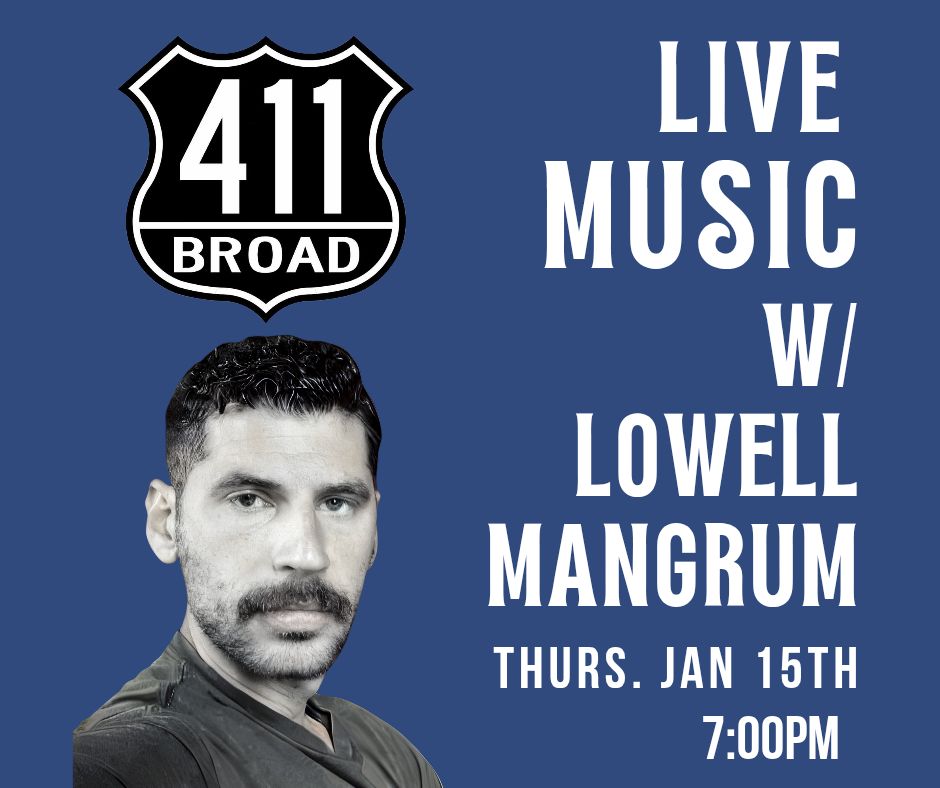 Lowell brings his tunes and talent to play in front of the shield at 411 Broad. come check out stop one on his 4 day performance marathon.