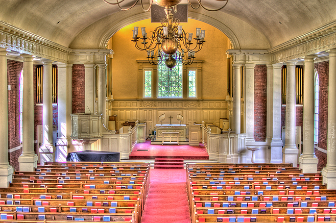 The chapel, was designed by architect Harry Carlson of Boston (who also designed the Ford Buildings) and was built by students in 1915. It was modeled after Christ Church in Alexandria, Virginia, which was purported to be modeled after the London church designed by the noted eighteenth-century architect Sir Christopher Wren.